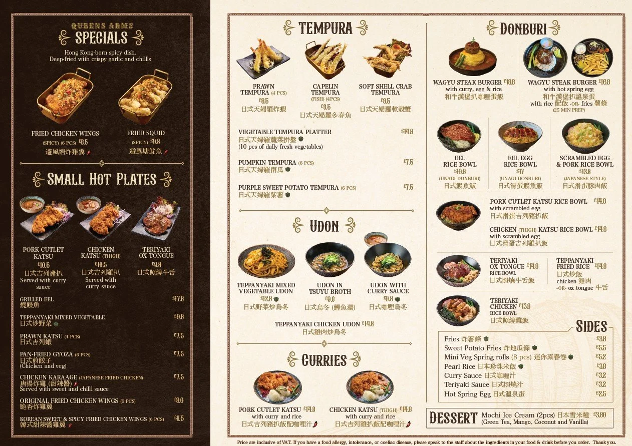 Our Menu Collection orders: Mon–Thu: 12:00–21:00 Fri: 12:00–22:00 Sat: 11:30–22:00 Sun: 11:30–21:00(Pls allow ~35 minutes) CLICK to ORDER Some of our best selling dishes Pork Cutlet Katsu with Curry and Rice日式吉列豬扒飯配咖哩汁 Teriyaki Ox Tongue Rice Bowl日式照燒牛舌飯 Eel Rice Bowl (Unagi Donburi ) 日式鰻魚丼飯 Teppanyaki Mixed Vegetable Udon (Veg)日式野菜炒烏冬